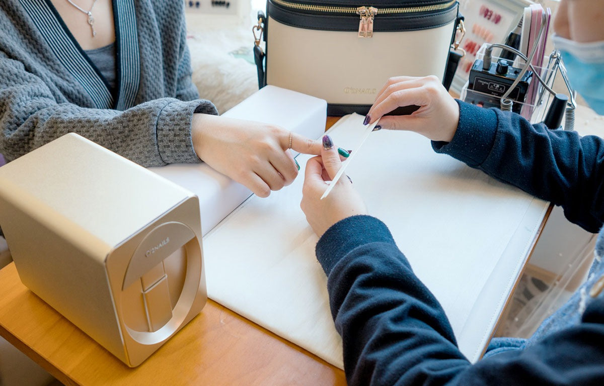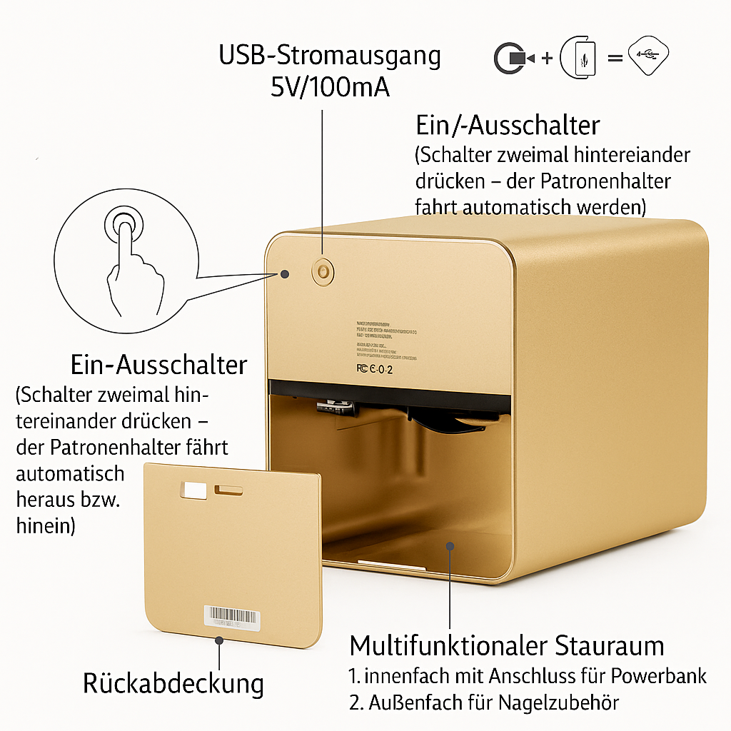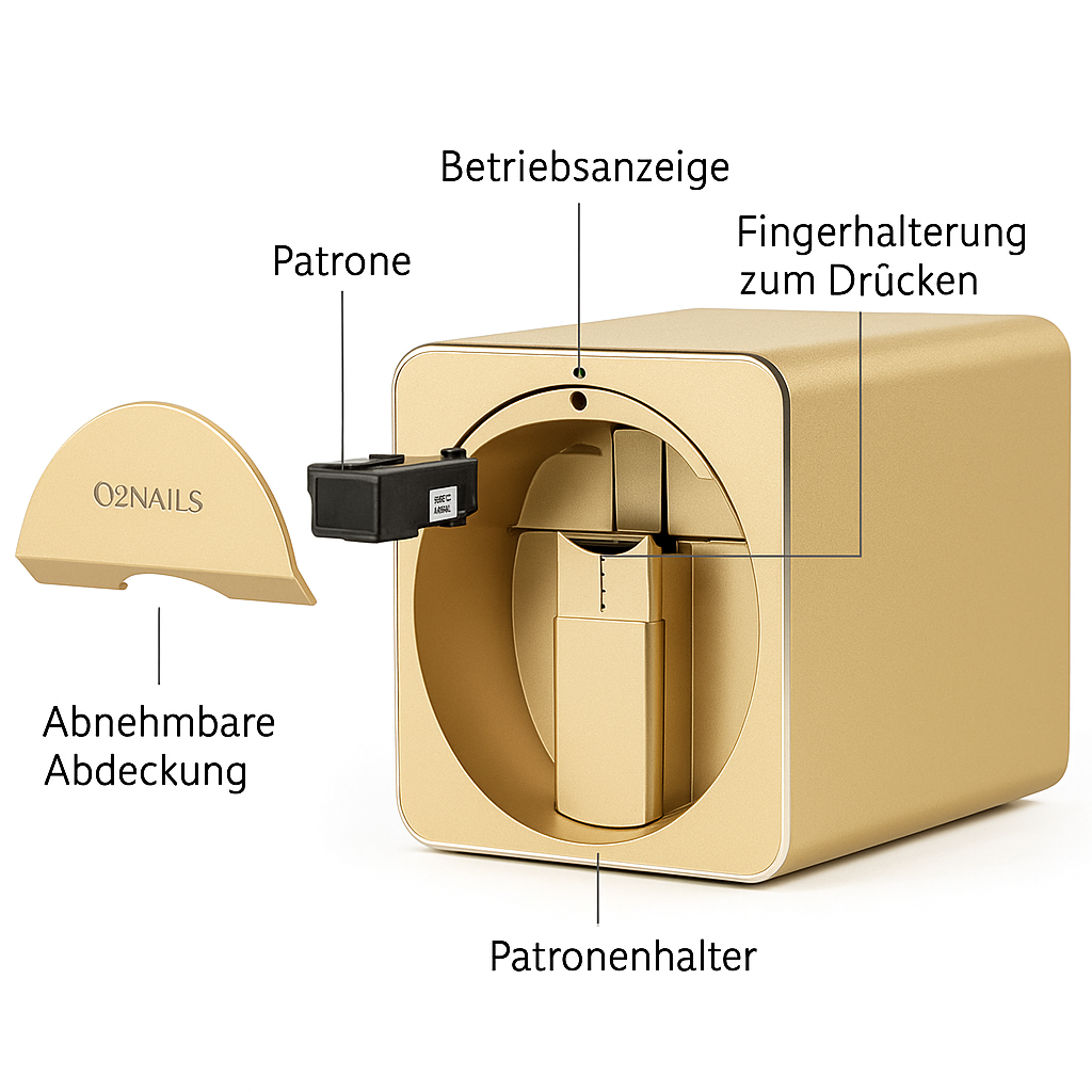 Ein kompaktes, tragbares Smart-Gerät, das jedes beliebige Muster direkt auf den Nagel druckt.